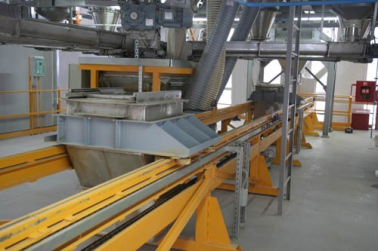 • Технологическое и транспортное оборудование линии компактно размещено на площадках в едином объеме помещения, исключающем влияние перетоков воздуха на работу дозирующего оборудования, характерное для поэтажной компоновки.