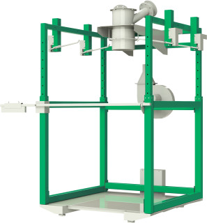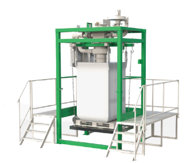 Фасовка в мягкие контейнеры типа БИГ-БЭГ с увеличенной производительностью и уплотнением хорошо сыпучих продуктов, плохо сыпучих продуктов и среднекусковых (хрупких) сыпучих продуктов.