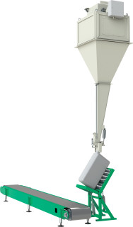 Фасовка средней производительности плохо сыпучих продуктов (мука, крахмал, комбикорм) в клапанные мешки без уплотнения продукта.