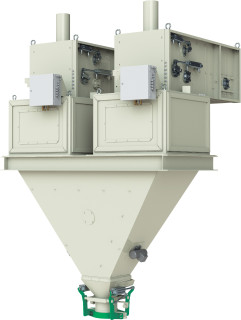 Фасовка высокой производительности плохо сыпучих продуктов (крахмал, премиксы, комбикорм и др.) с системой уплотнения продукта.