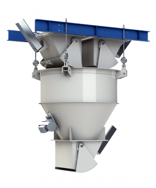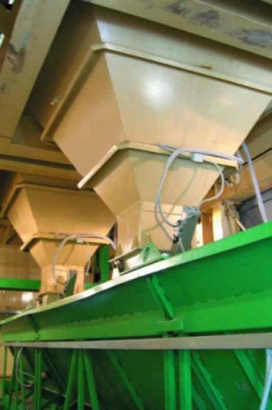 • весовой весовой бункер на несущей раме для подвески к перекрытию разгрузочная заслонка с невмоприводом, две дозирующих заслонки с невмоприводом или весовой транспортёр на несущей раме для подвески к перекрытию, три дозирующих заслонки с невмоприводом