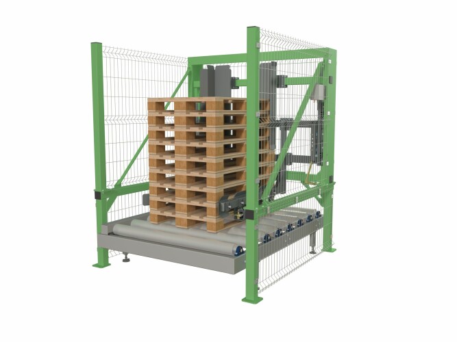 Процесс загрузки максимально упрощён: водитель погрузчика размещает стопку паллет на рольганг паллетоподатчика, после чего паллеты выдаются поштучно по запросу от дозирующего оборудования. При снижении количества паллет до установленного минимума система управления подаёт световой сигнал о необходимости дозагрузки. Порог срабатывания сигнала настраивается индивидуально в соответствии с требованиями заказчика.