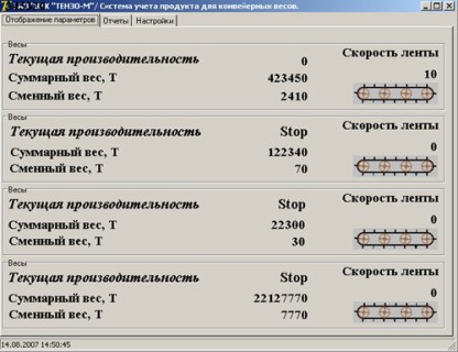 Предназначено для организации весового учёта сырья или продукции, прошедших через конвейерные весы ВНК. Отображает основные параметры весов: производительность, показания счетчиков, скорость ленты, статус весов и др. Возможен одновременный опрос до 15 конвейерных весов