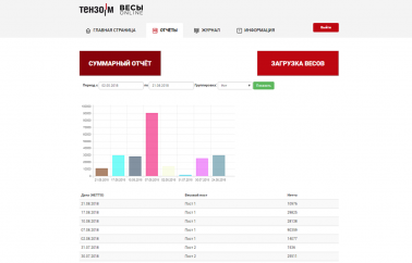 • Доступны графики отгрузки по нетто и загруженность весов по дням;
