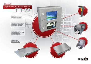 Новый промышленный терминал ТП-22 c сенсорным дисплеем представляет собой полноценный промышленный компьютер повышенной надежности. Для работы с весами в корпус терминала интегрирован весоизмерительный преобразователь.